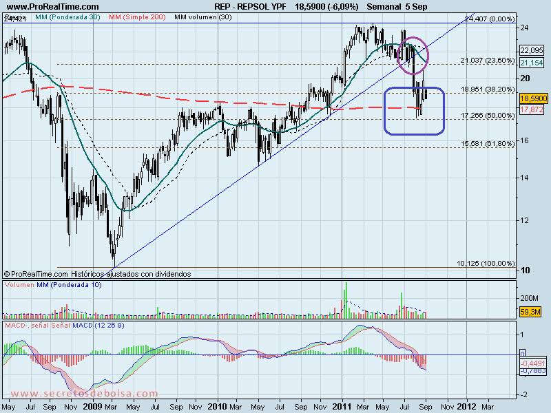 La respuesta no se hizo esperar en Repsol YPF. En julio hacíamos referencia a la bandera en la que se encontraba inmersa Repsol y a la pequeña divergencia bajista generada entre febrero y abril de este año.