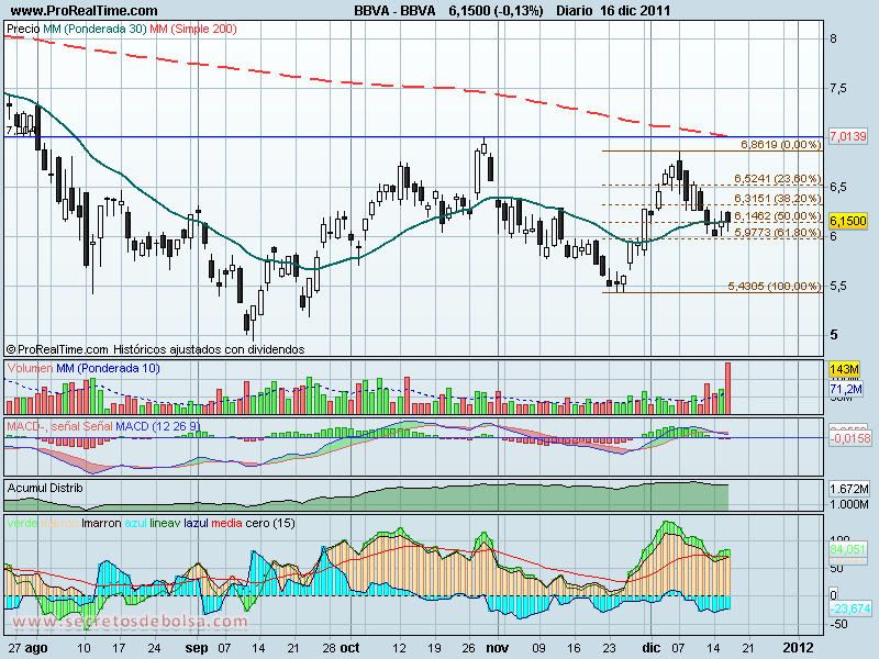 En principio y apoyándose en ese 61,80% realizará un pequeño repunte y mantendrá al precio encauzado en pequeño canal lateral en el que ya se encuentra, pero sin olvidarnos de que en la base de ese canal hay un gap alcista que todavía no se ha cubierto y que muy probablemente lo haga pues las manos fuertes aún no están inyectando dinero en el valor lo que hace pensar en que todavía no ha llegado el momento de dar el impulso pero sí de mantener una estabilidad en el precio intentando que las caídas empiecen a frenarse.
