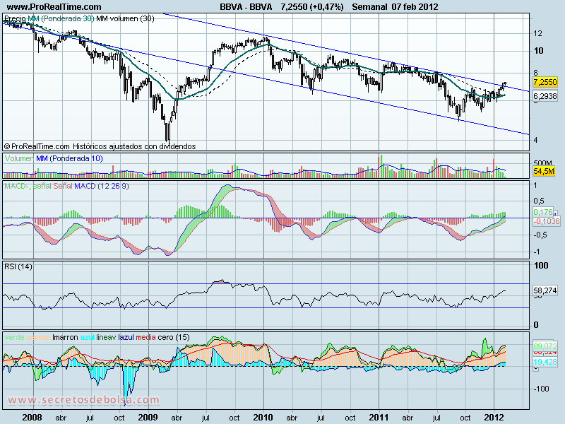 Una vez conseguido superar con éxito la primera prueba de fuego evaluamos la posibilidad de que el precio en BBVA fuera capaz de atravesar las resistencias a las que se enfrentaba en aquél momento comentando que todos los indicadores mostraban cierta fortaleza en el valor.